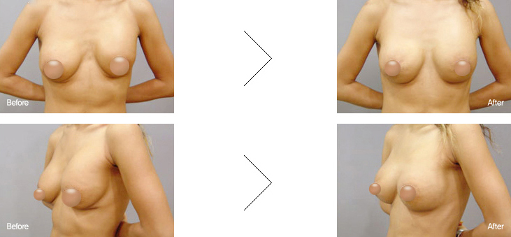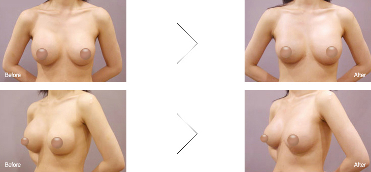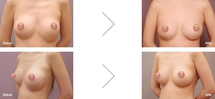 为了变大乳房做手术的话,会选择较简单的手术方法。 但是也有对形状不满意的时候,这是有可能注入填充物的空间不恰当或手术中没有剥离好注入填充物的位置, 因此填充物没在原来的位置原因。