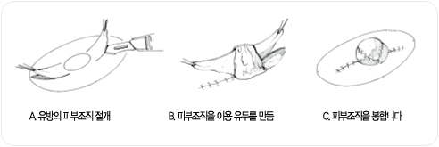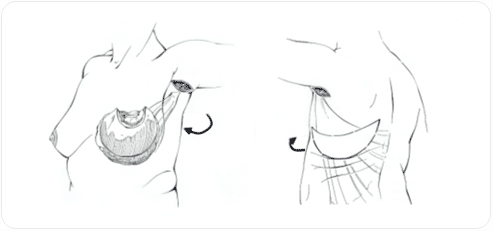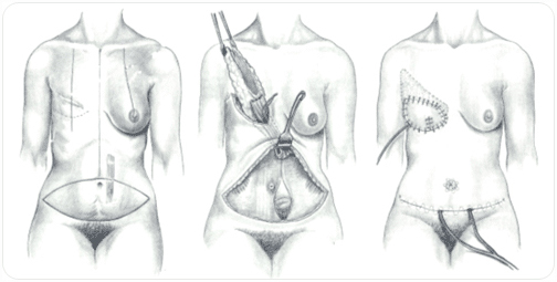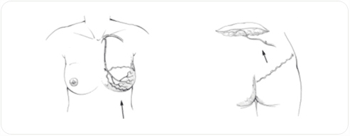 此手术是利用下腹、后背或臀部肌肉、脂肪等组织进行乳房再造。与利用假体进行乳房再造相比,其最大的优点是利用自身组织进行的乳房再造,手感及形状更自然。但是,提供自身组织的部位会留有新的伤疤,并且可以利用的自身组织部位及其量是有限的,因而手术复杂,难度较高。