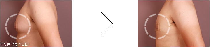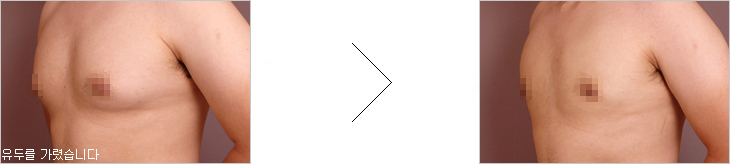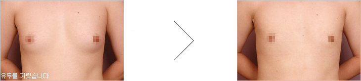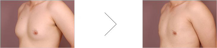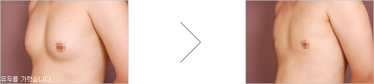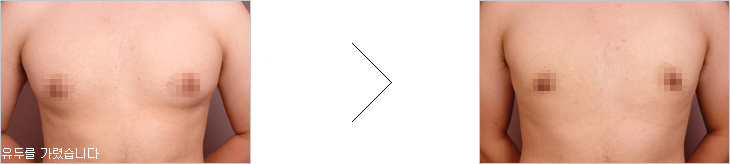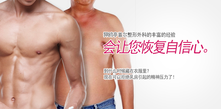 • 女性型乳房的主要原因是过度积累的脂肪的话,可以通过吸脂方式矫正。 腋下或者乳房下部切开0.5cm左右,去除乳房部位的脂肪,疤痕小,恢复快。
