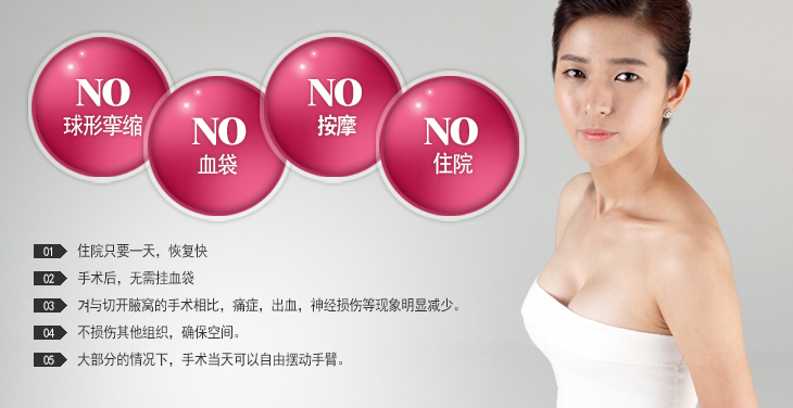 优点:使下垂的乳房自然变大,术后疼痛感小,几乎不会出现双线现象。