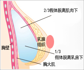 缺点:植入到乳腺组织下方,如果乳腺组织不足,容易触摸到假体。