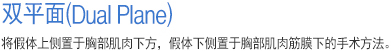 采用植入肌肉上下两个平面的方法,改善肌肉上方与肌肉下方的缺陷,使小或下垂的胸部自然变大,是近期最先进的手术方法。术后疼痛感小,几乎不会出现双线现象。