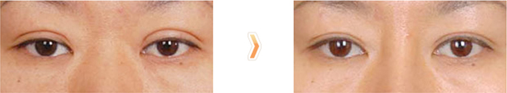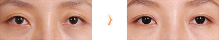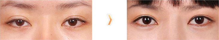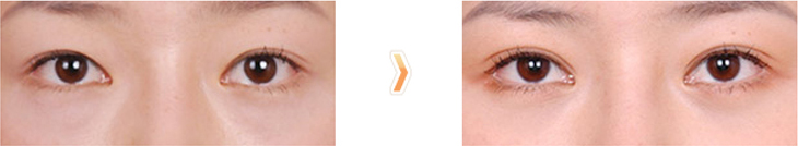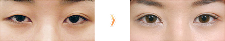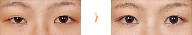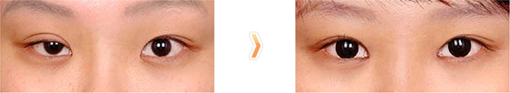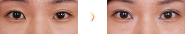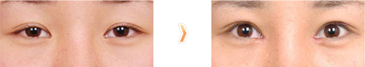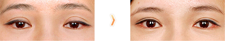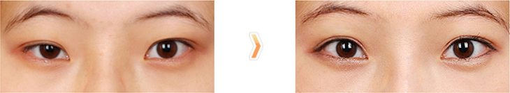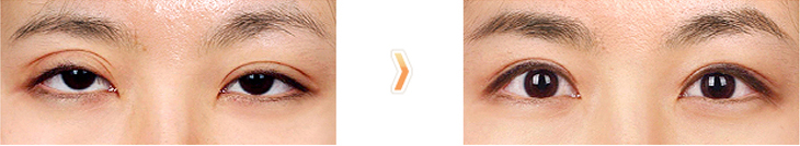 这样情况下因为大部分的组织损伤严重,双眼皮的线条不能调整太多。将上睑的双眼皮线略微往下拉,强化下面睁眼时的肌肉力量,使瞳孔看起来更加明显,这样就可以让双眼皮的线条看起来降下来许多。