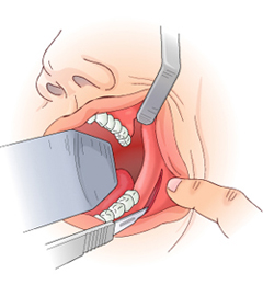 这个方法不是切掉骨头的全层,三层结构的骨头当中只切掉外面的一层。这减少下巴骨的厚度,从正面来看能得到减少方下巴部分面积的效果