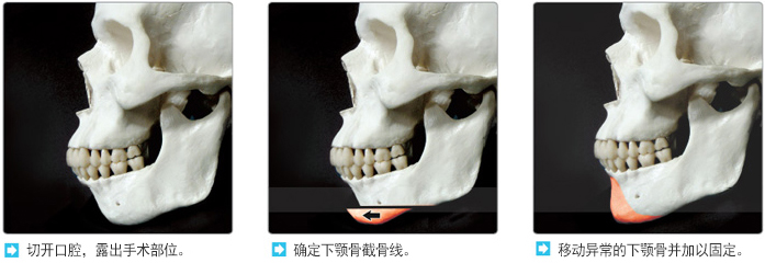 此方案将后缩的下巴部位骨头截开,然后将骨头整体向前移动。因为是将骨头整体向前移动,所以此方案将塑造出自然的下巴形态、完美的颈部曲线。不过,此方案必须要进行全身麻醉。