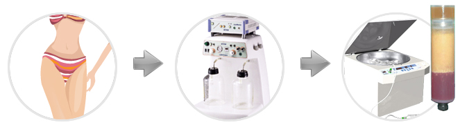 从自体脂肪堆积的部位(腹部、大腿)抽取脂肪,通过过滤离心沉淀,精细筛选出纯脂肪。