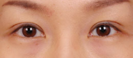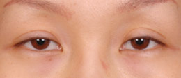 双眼皮不明显,上眼睑下垂,让人看起來无精打采、疲劳困乏。校正后双眼皮变得明显、眼睛明亮而动人。