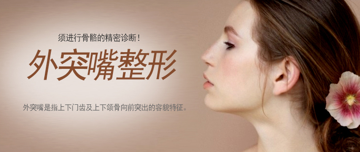 与鼻根部或颌部相比,唇部过分向前突出的容貌特征被称为外突嘴。唇部过分向前突出会给人一种生硬倔强、稚气未脱的印象。外突嘴分为上下门齿向前突出和上下门齿以及上下颌骨一同向前突出的情况。大部分的韩国人除了上下门齿向前突出外,还伴有上下颌骨向前突出的情况。
