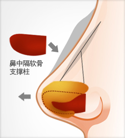 把鼻中隔软骨使用为支撑柱,提高下垂的鼻尖