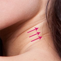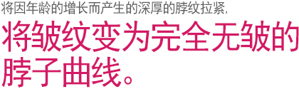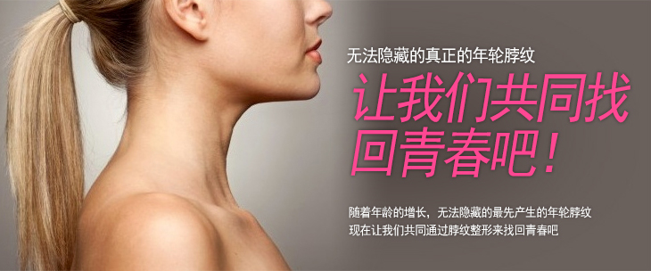 脖子很容易因为运动频繁而产生皱纹,因此脖纹也更容易增加。实际生活中的脖纹在初期保持着功能性、活动性的皱纹形态,但年龄越大,下垂的肌肤与脖子的筋膜层就越变得松弛,甚至会出现像变色龙的脖子一样松弛的情况。此时,可将此类皱纹归类为由重力引起的皱纹。如果是横纹,可用脂肪注入的方法进行修复,也可用大范围下脸部提拉术等复杂方法进行改善。