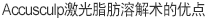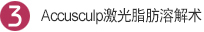 Accusculp激光脂肪溶解术是指利用最优化的1444毫米波长的Accusculp激光进行的脂肪溶解术。1444毫米波长的激光在溶解脂肪的同时,因为可吸收,所以可达到溶解脂肪的效果。该手术不仅可以矫正腹部和大腿等部分体形,还可以安全溶解脸部(下巴线条)下垂的颊骨肌肉等的脂肪。