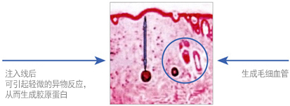 获得食品与药品管理局认证的特殊线上因为有凸起物, 所以注入皮肤时, 凸起物就会挂在皮肤内部的皮下脂肪层和软组织层, 因此能够提