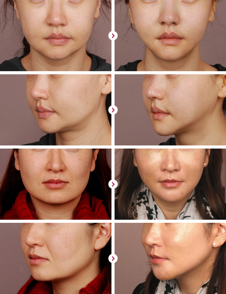 Accusculp激光脂肪溶解术在脸部脂肪减少的过程中, 波长还作用于肌肉中, 因此可同缩小由于咀嚼肌发达导致的四角下颌的肉毒杆菌手术共同进行, 可实施使脸部线条更加修长, 鲜明的复合型手术。