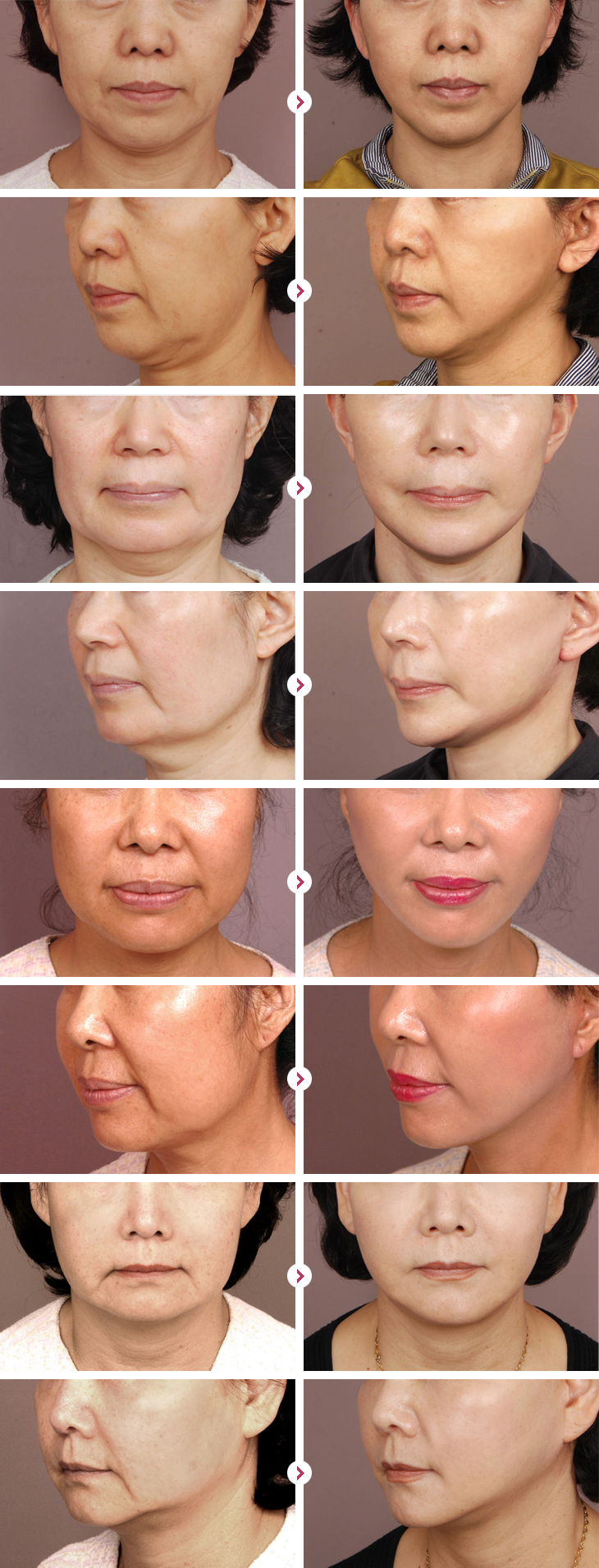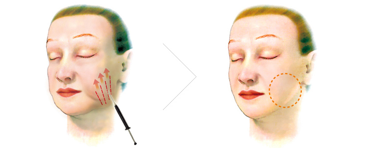该手术不像以前在线提升术中横向注射那样,而是通过向天空方向竖向注射,达到即使受重力的影响,也不失弹力的效果。根据个人的皮肤与皱纹的程度进行1:1手术,提高了效果与顾客满意度。